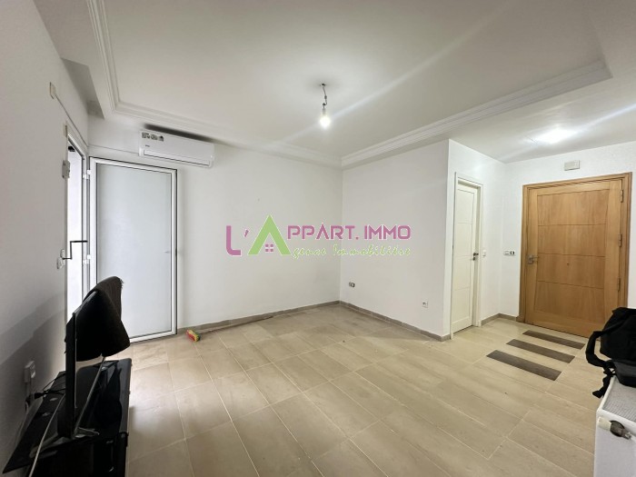 Cet appartement se situe dans une résidence gardée et propre à Mourouj 6. Il se compose d'un salon avec accès à un balcon, une chambre à coucher avec dressing, une salle d'eau avec douche et une cuisine aménagée et équipée par plaque, hotte et four. Il est équipé par un chauffage central et un climatiseur. Une place de parking est disponible.