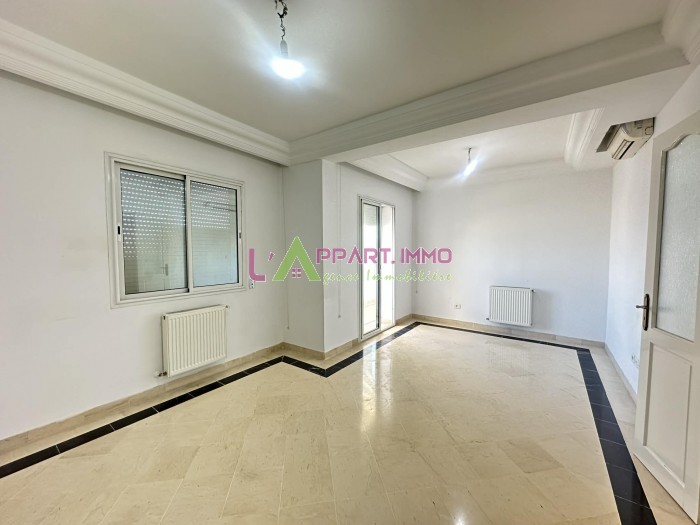 Cet appartement se situe dans une résidence gardée et propre à Mourouj 4. Il se compose d'un salon avec un balcon, trois chambres à coucher dont une avec dressing partageant une salle de bain. Une salle d'eau est disponible pour les invitées. Une cuisine aménagée avec accès à un séchoir. Il est équipé par un chauffage central et deux climatiseurs. Une place de parking est disponible.