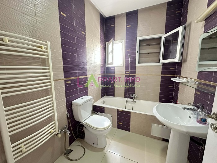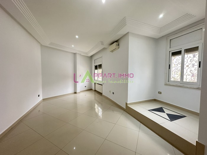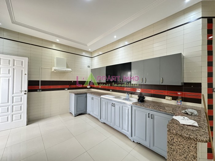 Cet étage de villa se situe dans un quartier calme et propre à Mourouj 3. Il se compose d'un grand salon, trois chambres à coucher partagent une salle de bain et une cuisine aménagée avec accés à une grande terrasse. Une salle d'eau pour les invités est disponible. Il est équipé par cinq climatiseurs et un chauffage central. Un garage est disponible.