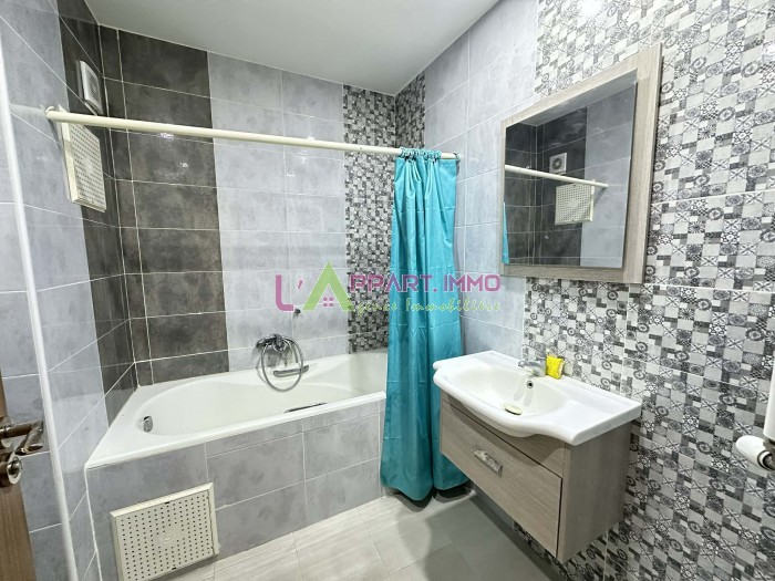 Cet appartement se situe dans une résidence gardée et propre à Borj Cedria. Il se compose d'un salon avec accès à un balcon, deux chambres à coucher partagent une salle de bain et une cuisine aménagée et équipée par plaque, hotte et four. Il est équipé par un chauffage central. Une place de parking est disponible.