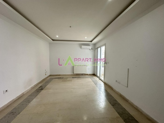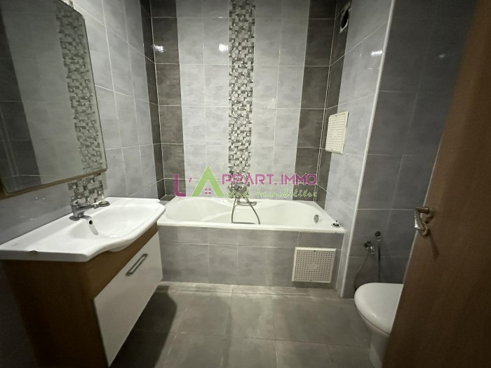 Cet appartement se situe dans une résidence gardée et propre à Borj Cedria. Il se compose d'un salon avec accès à un balcon, deux chambres à coucher dont une avec dressing partagent une salle de bain et une cuisine aménagée avec accès à un séchoir. Il est équipé par un chauffage central. Une place de parking est disponible.