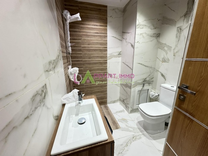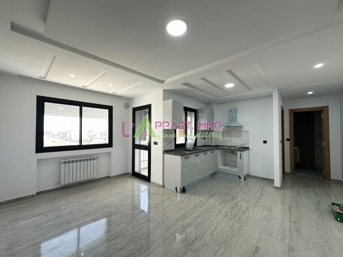 Cet appartement neuf se situe dans une résidence gardée et propre à Borj Cedria. Il se compose d'un salon avec un balcon, une chambre à coucher avec dressing. Quant à la cuisine elle est ouverte sur le salon et elle est équipée et aménagée avec des éléments de rangements, plaque, hotte et une salle d'eau avec douche. Il est équipé par un chauffage central. Une place de parking est disponible.