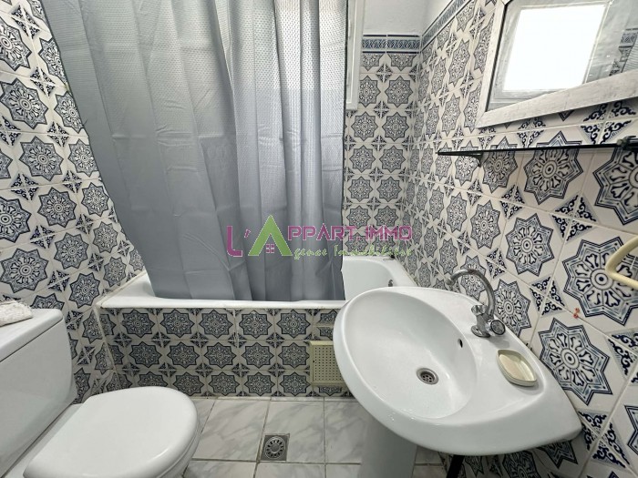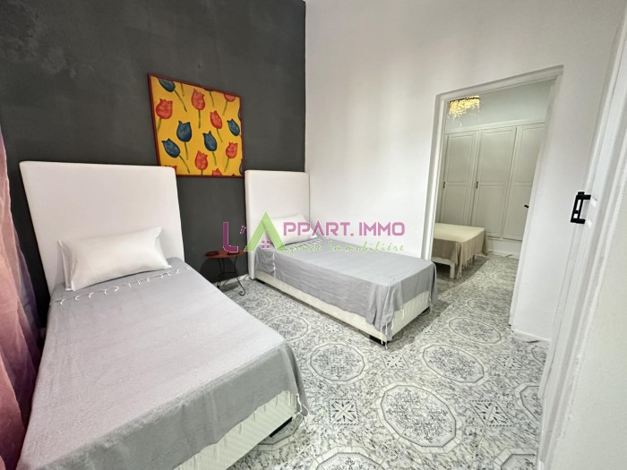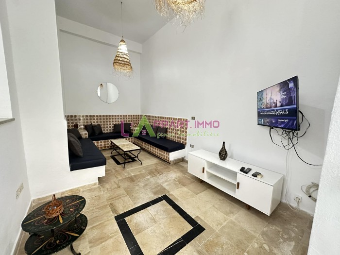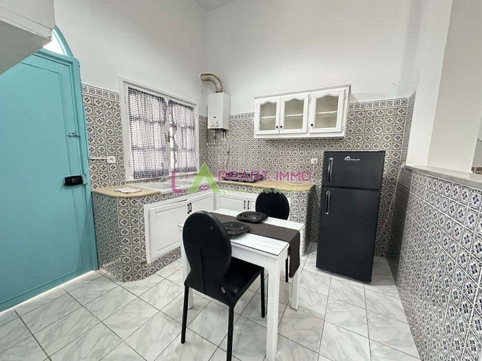 Ce rdc richement meublé se compose d'un salon, deux chambres à coucher, une cuisine équipée et aménagée avec accés à une terrasse et une salle de bain. Il est équipé par un climatiseur et un chauffage à gaz.