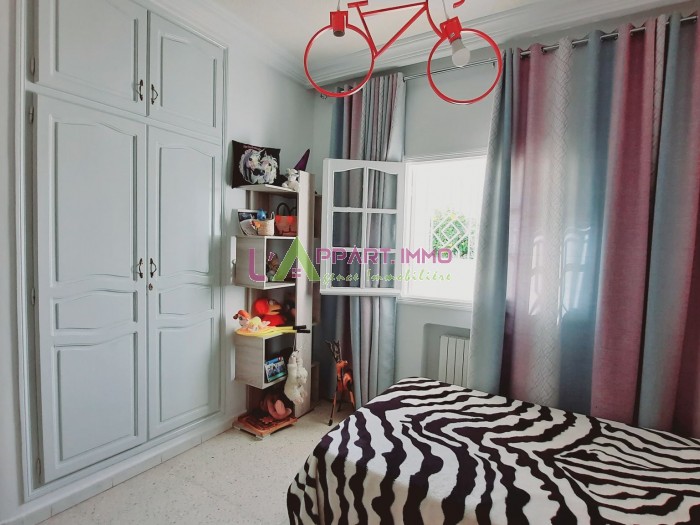Ce rez de chaussée de villa avec une entrée indépendante se situe dans un quartier calme à Borj Cedria. Il se compose d'un salon qui s'ouvre a une terrasse et un jardin, quatre chambres à coucher dont deux avec placards partageant une salle de bain et une cuisine aménagée avec accès à une grande terrasse. Il est équipé par un chauffage central.