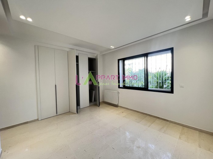 Cet appartement se situe dans une résidence gardée et récemment construite à Boumhel. Il se compose d'un grand salon avec un balcon, trois chambres à coucher avec dressings dont une suite parentale partageant une salle de bain. Une cuisine aménagée et équipée par une plaque, four et hotte aspirante avec accès à un séchoir et une salle d’eau pour les invités est disponible. Il est équipé par un chauffage central et trois climatiseurs. Une place de parking sous-sol est disponible.