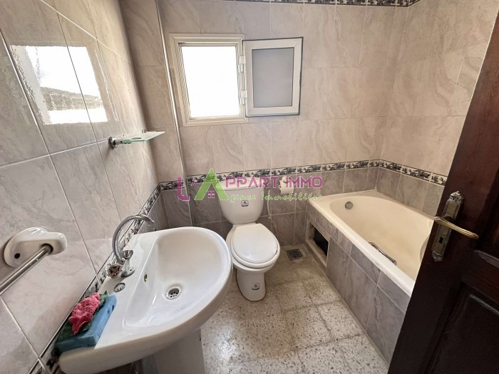 Cet étage de villa se situe dans un quartier calme et propre à Ezzahra. Il se compose d'un salon, deux chambres à coucher dont une avec placard partageant une salle de bain et une cuisine aménagée avec accès à un séchoir. Il est équipé par un chauffage central et un climatiseur.
