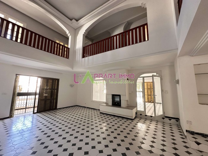 Cette grande villa répartie sur deux niveaux se situe dans un quartier calme à Hammam Chatt. L'entrée principale ouvre sur un vaste jardin qui entoure la villa. L'entrée donne sur un grand salon ainsi que d'une salle à manger et un séjour. La cuisine est aménagée de rangements pratiques et fonctionnels et une salle d'eau pour les invités est disponible. Des escaliers nous mène au 1er étage qui couvre la partie nuit. Cette dernière abrite quatre spacieuses chambres à coucher avec dressings partageant une salle de bain, une suite parentale avec dressing et sa propre salle de bain. Une piscine complète cette demeure. Un garage peut aisément contenir trois voitures, une pièce à multiple fonctions et une cuisine au rez de jardin.