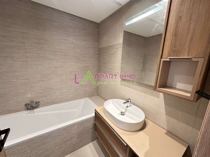 Cet appartement se situe dans une résidence gardée et récemment construite à Boumhel. Il se compose d'un salon avec un balcon, deux chambres à coucher avec dressings partageant une salle de bain. Une cuisine aménagée et équipée par une plaque, four et hotte aspirante avec accès à un séchoir. Il est équipé par un chauffage central et trois climatiseurs. Une place de parking sous-sol est disponible.