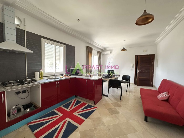 Cet appartement se situe dans une résidence gardée et propre. Il se compose d'un salon, une chambre à coucher avec un balcon. Quant à la cuisine elle est ouverte sur le salon et elle est équipée et aménagée avec des éléments de rangements, plaque, hotte et four et une salle de bain. Il est équipé par un chauffage central et un climatiseur. Une place de parking est disponible.