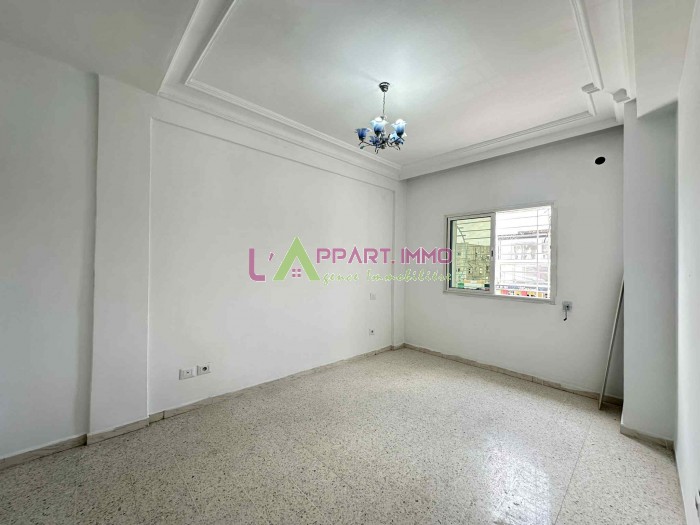 Cet appartement se situe dans une résidence gardée à Nouvelle Madina. Il se compose d'un salon avec un balcon, deux chambres à coucher dont une avec dressing partageant une salle de bain et une cuisine aménagée et équipée par plaque, hotte et four avec accès à un séchoir. Il est équipé par un chauffage central. Une place de parking est disponible.