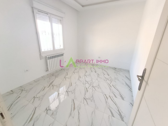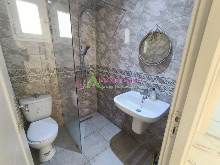 Cet étage de villa se situe dans un quartier calme à Hammam Chatt coté la gare. Il se compose d'un salon avec accès à une terrasse, deux chambres à coucher partageant une salle d'eau avec douche et une cuisine aménagée et équipée par plaque. Il est équipé par un chauffage central.