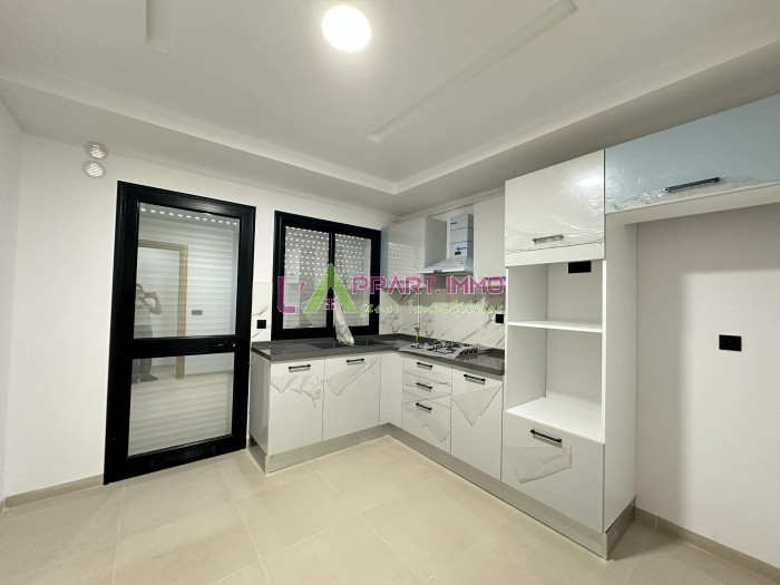 Cet appartement neuf se situe dans une résidence propre et gardée à Borj Cedria. Il se compose d'un salon, deux chambres à coucher avec dressing partageant une salle de bain et une cuisine aménagée et équipée par plaque hotte et plaque avec accès à un séchoir. Il est équipé par un chauffage central. Une place de parking est disponible. Prix le mètre carrée : 2500DT 3éme étage : Deux appartements S+2 : Superficie 103m2 4éme étage : Deux appartements S+2 : Superficie 98m² / 102m² et un appartement S+3 : Superficie 134m²