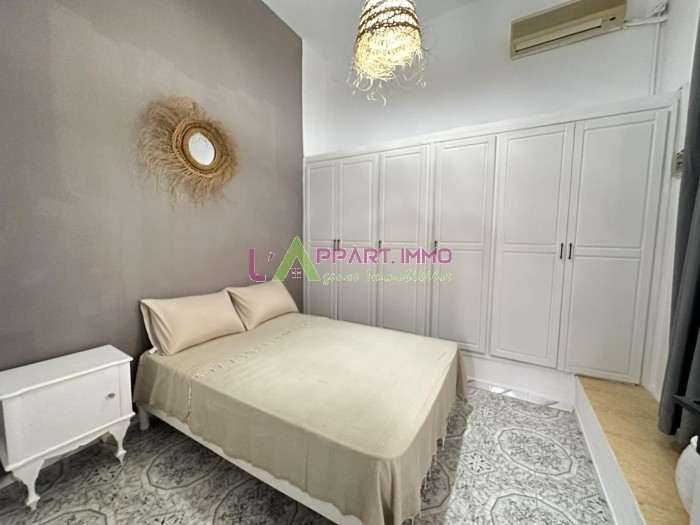 Ce rdc richement meublé se compose d'un salon, deux chambres à coucher, une cuisine équipée et aménagée avec accés à une terrasse et une salle de bain. Il est équipé par un climatiseur et un chauffage à gaz.
