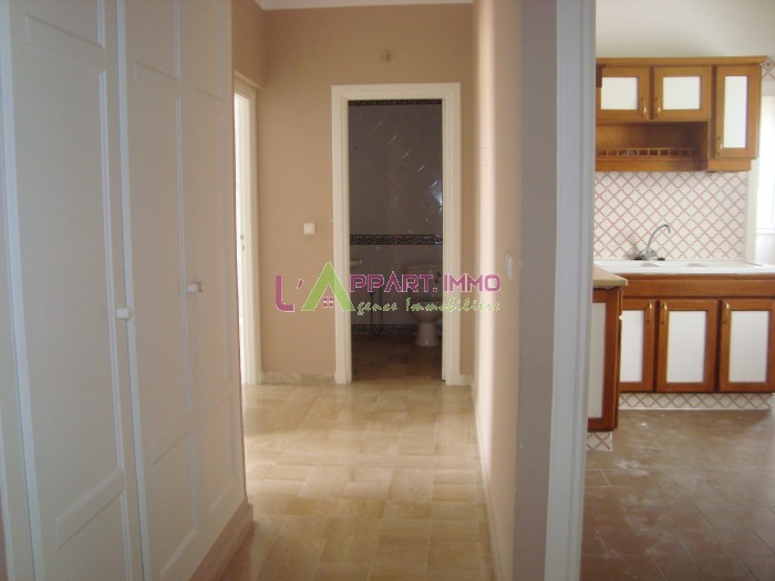 Cet appartement se situe dans une résidence gardée. Il se compose d'un salon avec un balcon, deux chambres à coucher partageant une salle de bain et une cuisine aménagée avec un accès à un séchoir. Il est équipé par chauffage central. Une place de parking est disponible.