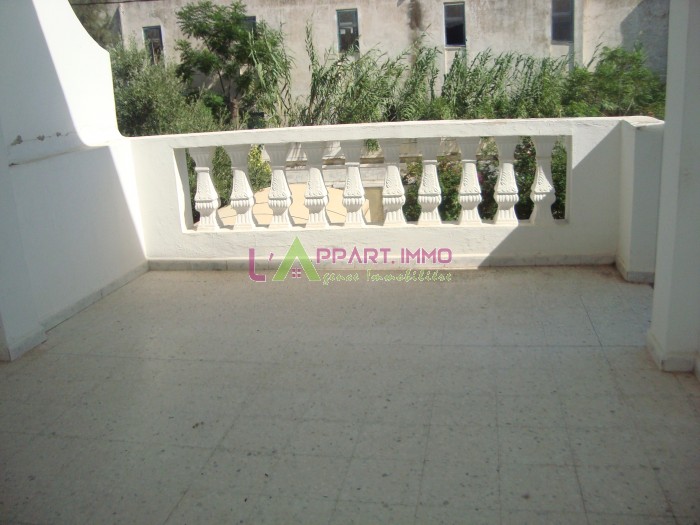 Cet étage de villa avec une entrée indépendante se situe dans un quartier calme. Il se compose d'un salon, trois chambres à coucher partageant une salle de bain et une cuisine aménagée. Il est équipé par un climatiseur.
